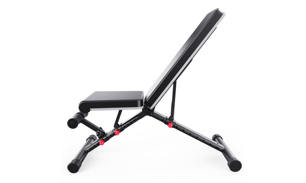 Скамья спортивная имеет 11 уровней регулировки спинки и 7 уровней регулировки сиденья, чтобы быстро преобразовать ее для тренировки в прямое, наклонное и даже отрицательное положение. Высота от сиденья до пола равна 51 см. Валики для ног из мягкого вспененного материала также регулируется в 2-х положениях по наклону и в 4-х положениях по высоте, чтобы занятия проходили максимально комфортно.